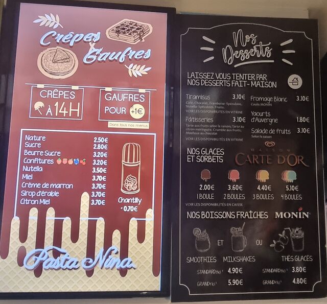 Pour l’après midi, profitez de nos crêpes et gaufres ainsi que de nos boissons délicieuses.